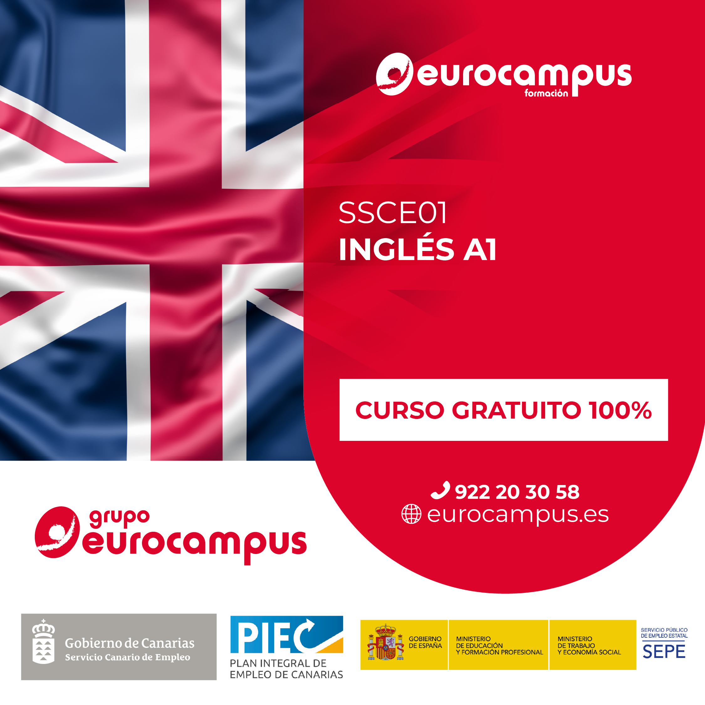 Este curso de inglés A1 se realiza en modalidad presencial con una duración de 150 horas + 10h de módulo transversal.